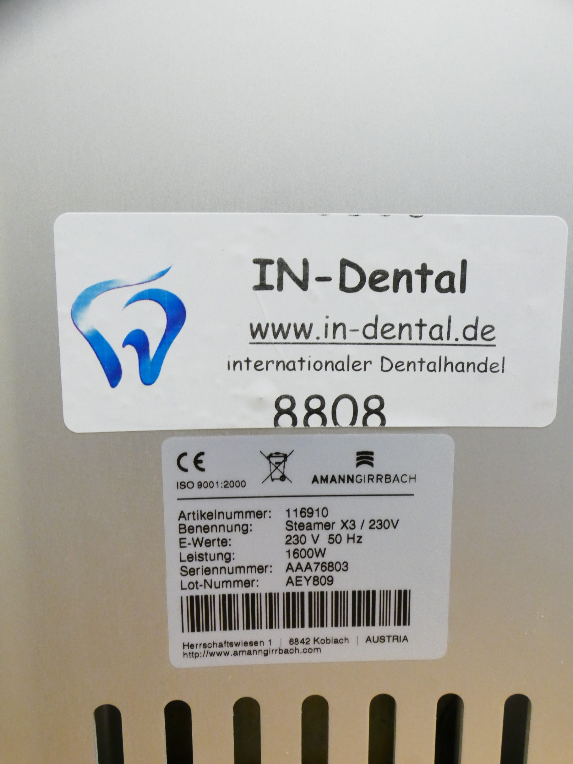 Amann Girrbach Steamer X3 Dampfstrahler Dampfstrahlgerät 8808